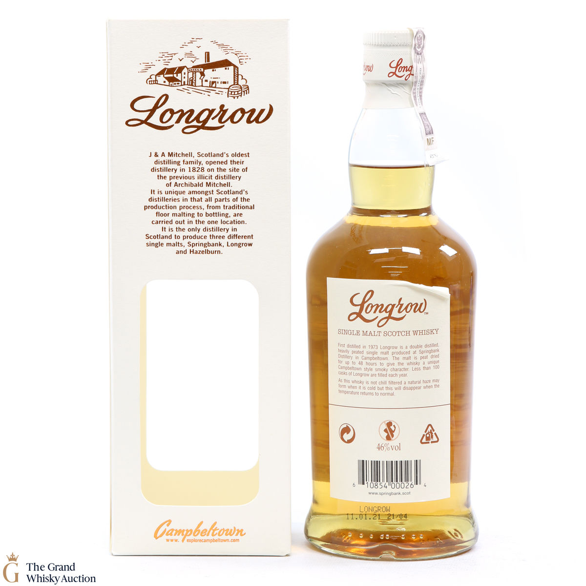 A bottle of Longrow Peated - This is essentially the awesome Longrow C.V. bottling in new packaging, which used to be Longrow's entry-level whisky. Longrow is Springbank's heavily peated whisky - this is a no age statement expression.
