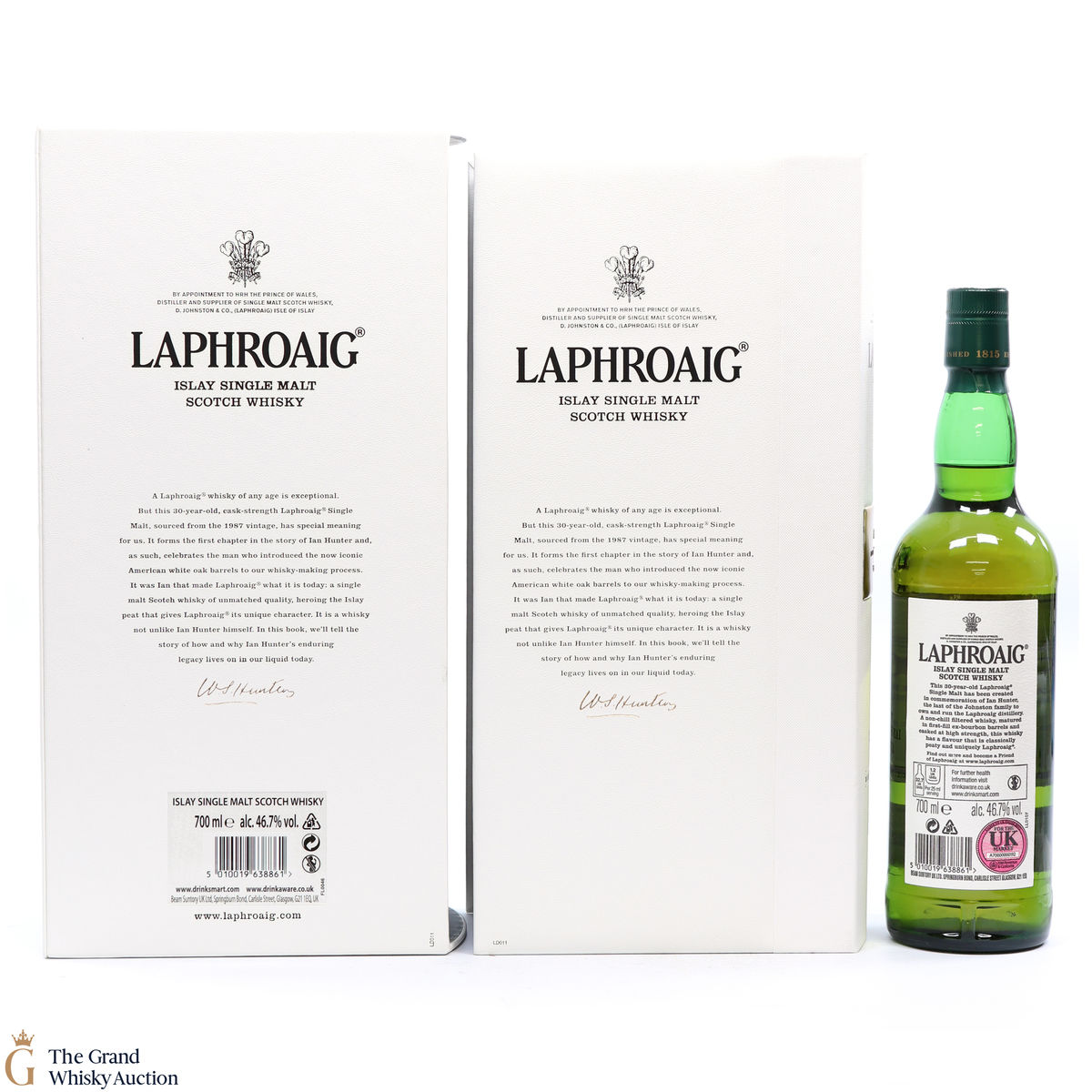 This is a 30 year old cask strength bottling from the 1987 vintage. This bottle forms the first chapter to the story of Ian Hunter and celebrates the man who introduced the iconic American white Oak barrels to the whisky making at Laphroaig. It is said that it was Ian who made Laphroaig what it is today.