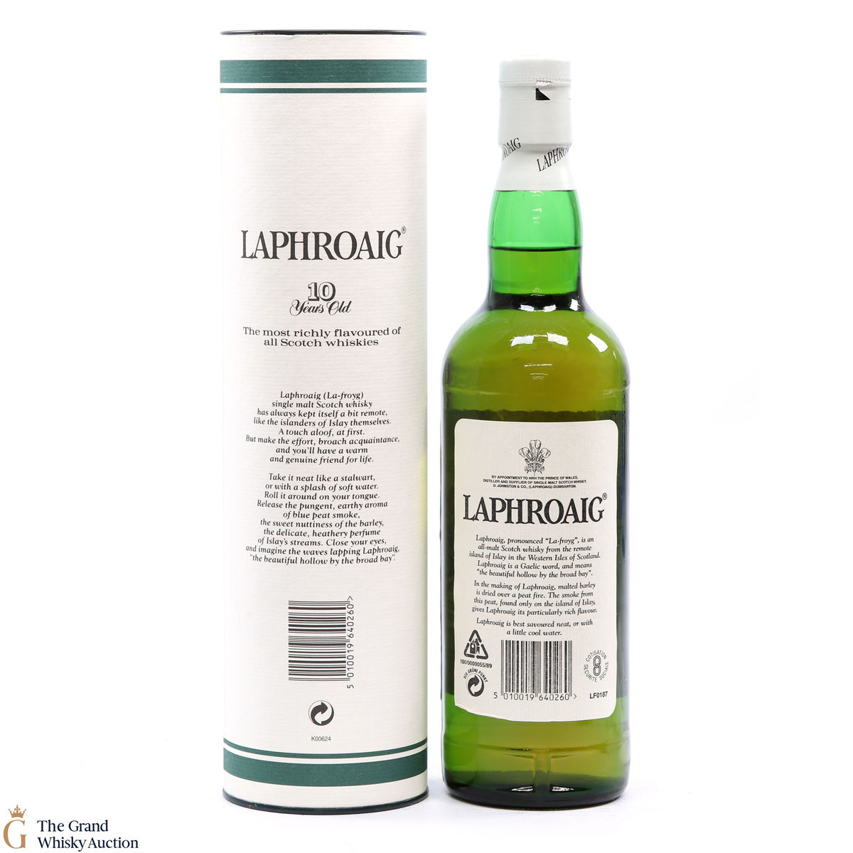 A 70cl of the medicinal 10 year old from Islay's bestselling distillery, Laphroaig. In making Laphroaig, malted barley is dried over a peat fire. The smoke from this peat, found only on Islay, gives Laphroaig its particularly rich flavour.
