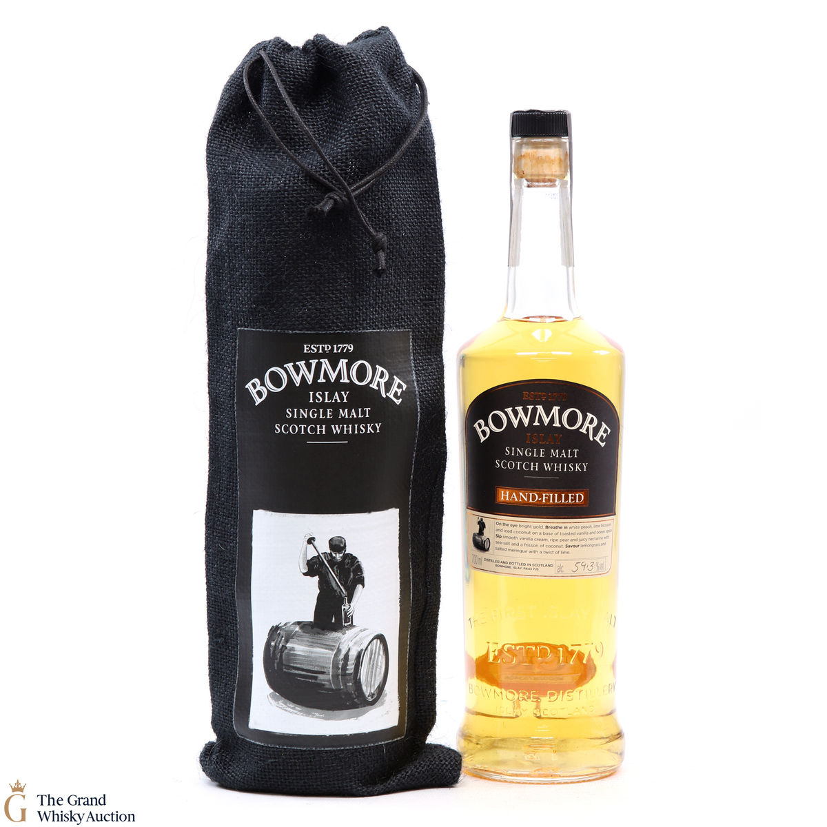 Hand filled and exclusive to the Bowmore distillery. This is a first-fill Bourbon matured for 11 in cask 377. Bottled in November 2015 @ 59.3%.