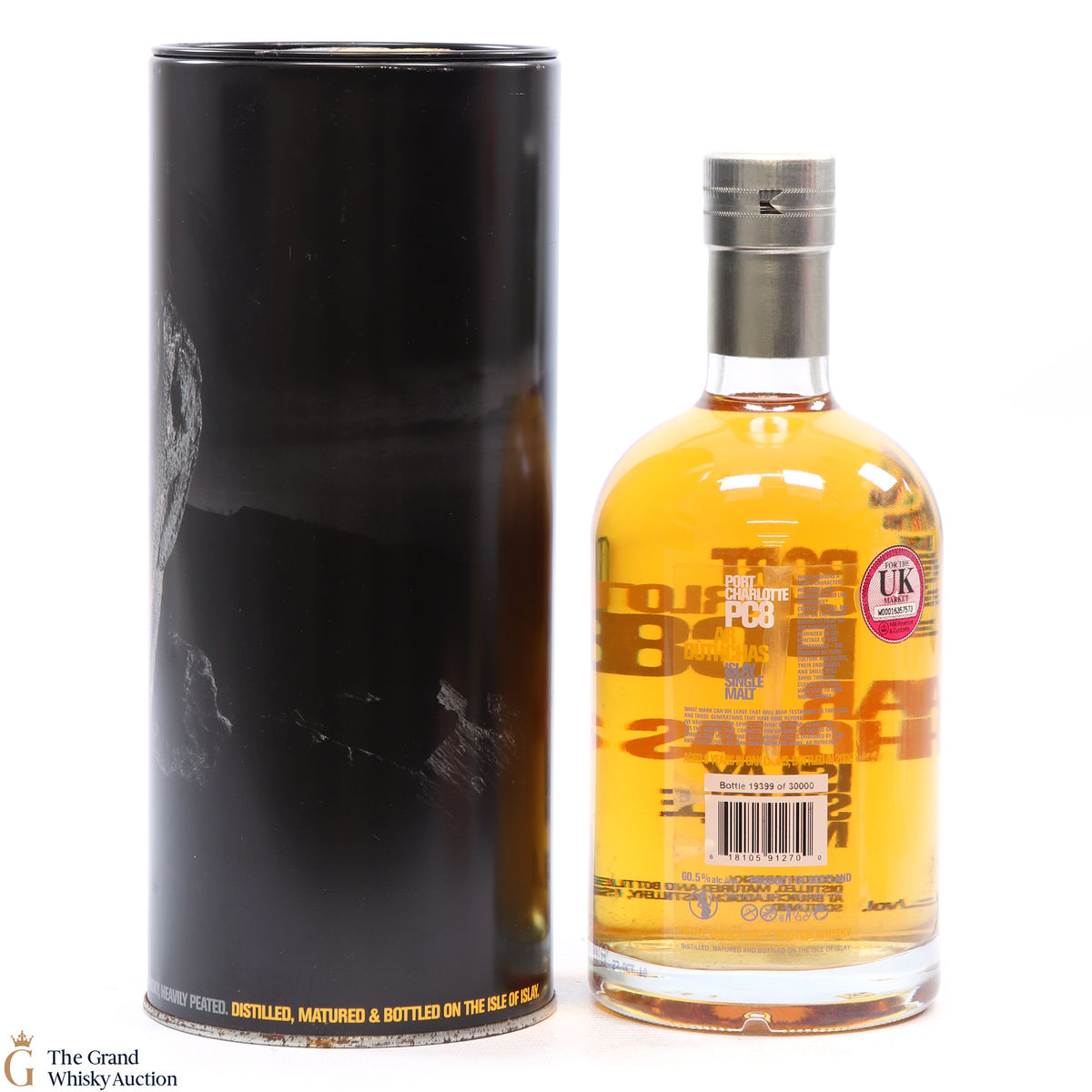 Port Charlotte PC8, produced by Bruichladdich Distillery, is a heavily peated spirit. It was the first release of heavily peated Port Charlotte and was produced in 2009 from some of the first spirits to be produced after the distillery's reopening. The single malt was bottled at 8 years old in 2006 and was limited to 30000 bottles.