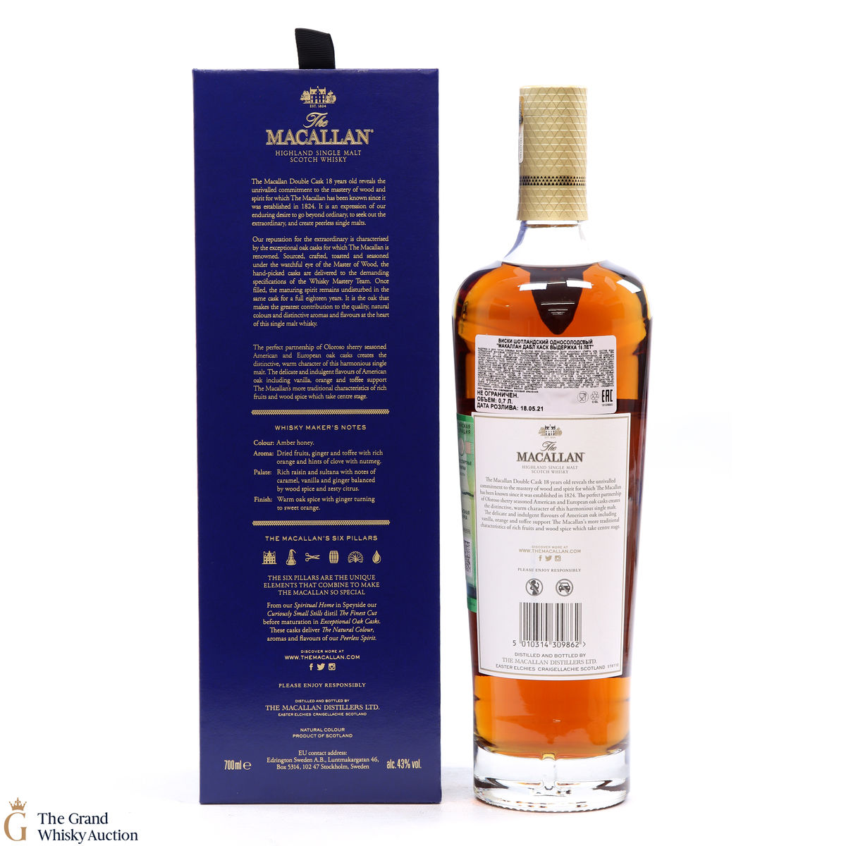 This 18 Year Old Macallan was matured in a combination of American and European Sherry oak for a minimum of 18 years. It is part of the Macallan Double Cask range, which marries the classic Macallan style and the sweetness of American oak.