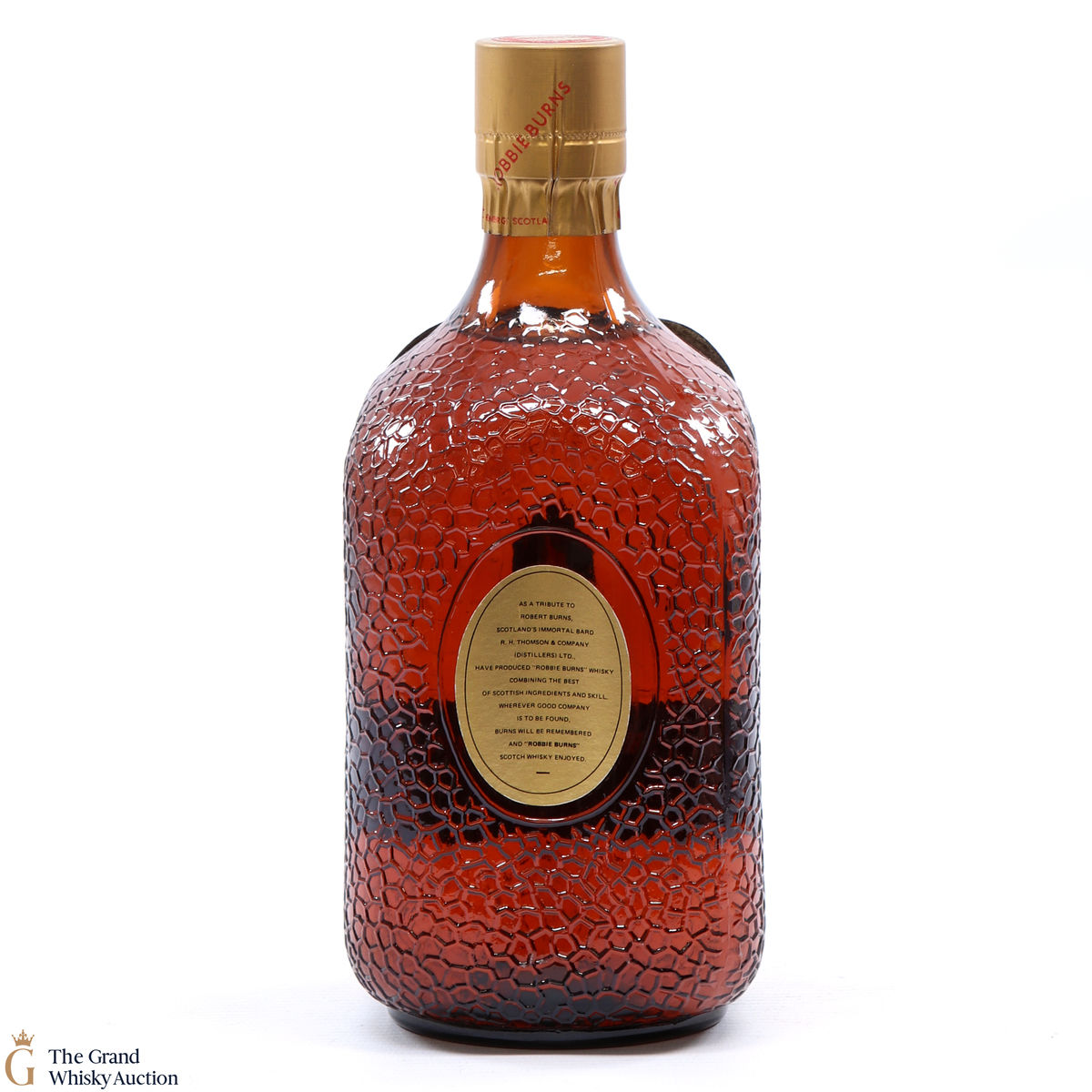 Robbie Burns Blend from the 1970s. A tribute to Robert Burns, 'combining the best of Scottish ingredients and skill wherever good company is found, Burns will be remembered and Scotch whisky will be enjoyed.'