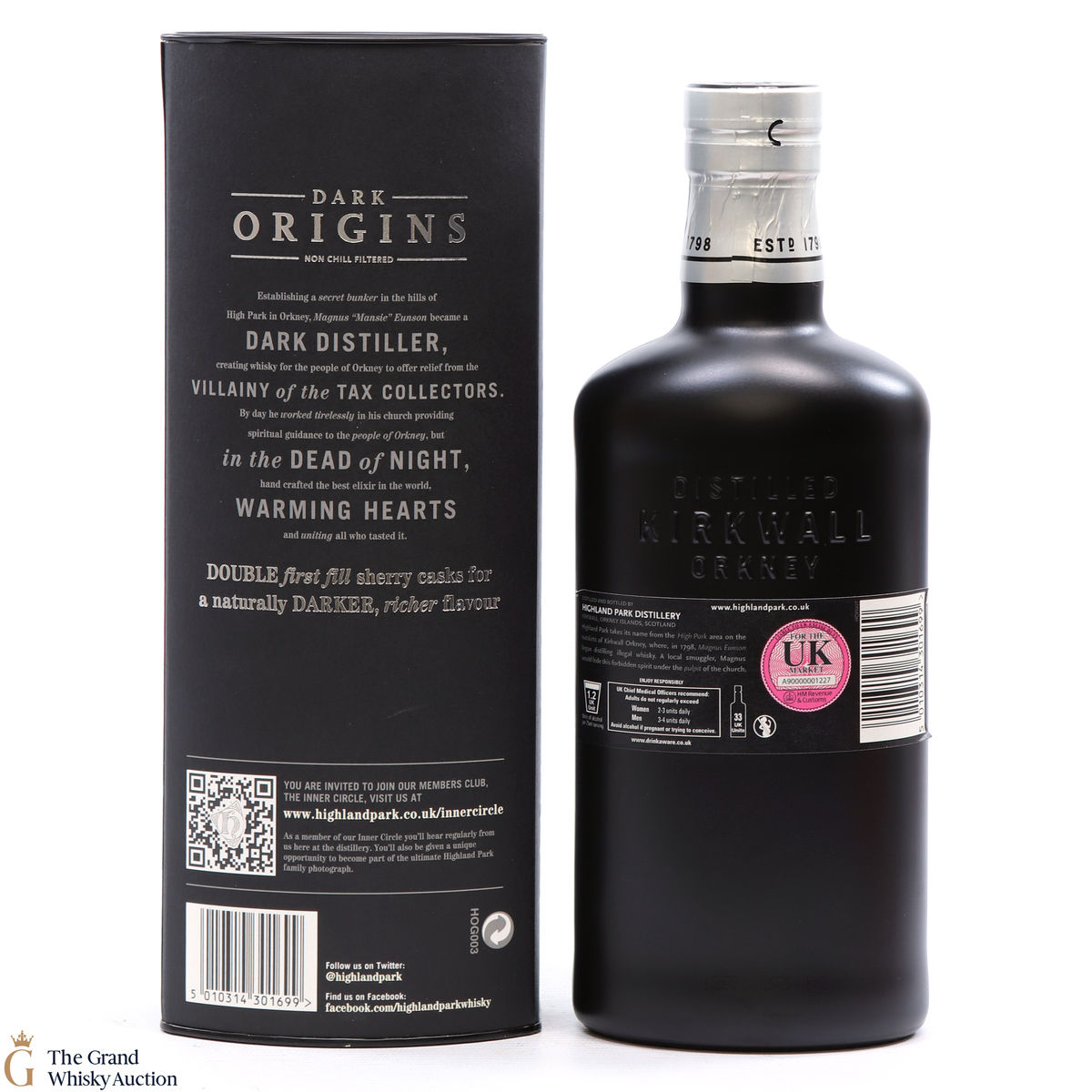 Highland Park Dark Origins is core bottling that celebrates the early days of Magnus Eunson's illicit distilling on Orkney, back before the distillery was even founded in 1798. Magnus worked as a butcher and church official by day, but by night he was a legendary whisky smuggler and distiller outwitting the exciseman.