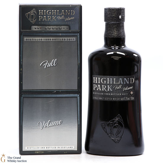 Full Volume by Highland Park was distilled in 1999 and bottled in 2017 from 481 casks. The single malt was matured exclusively in first-fill bourbon casks and was bottled at 47.2% ABV and comes presented in a themed presentation box resembling speaker.