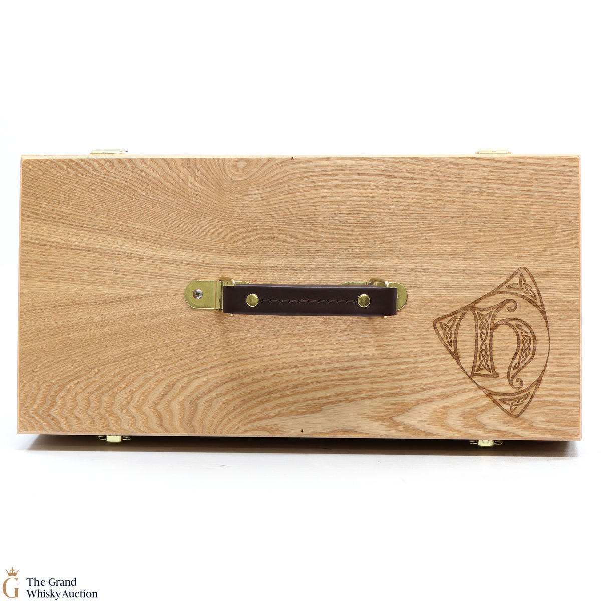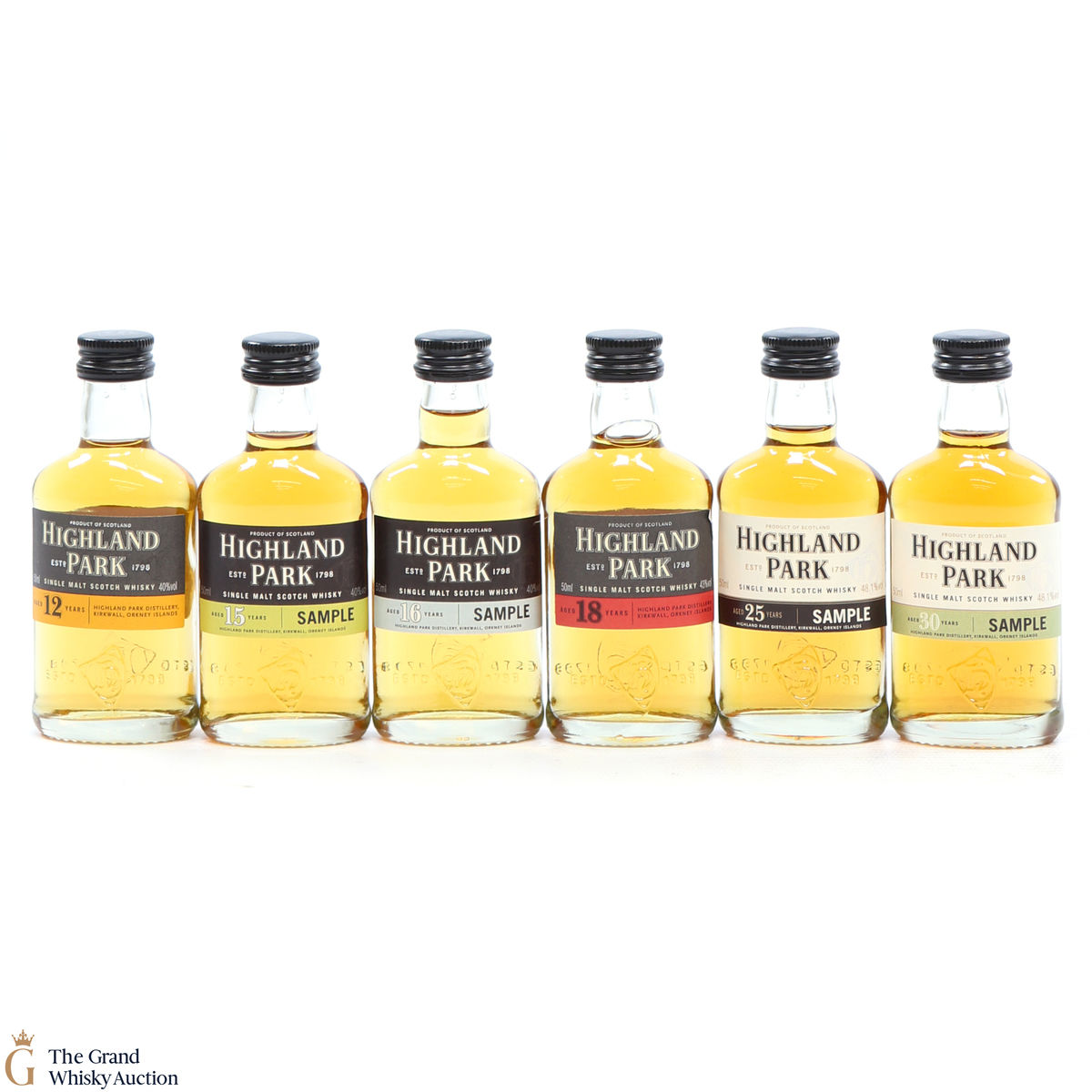 This incredibly interesting and unique lot comes from Highland Park Distillery in Orkney. This box was used by Highland Park Ambassadors to take to promotions and sales events to display the products they had to offer. Held in a large wooden box is: