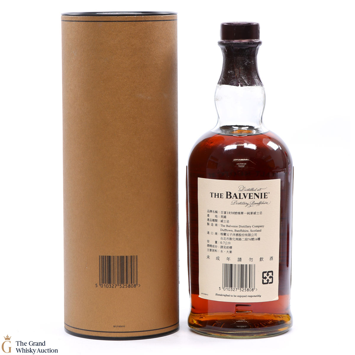 A marriage of six traditional whisky casks #2387, #9917, #5036, #5245, #15338, #15328 and three sherry butts #6443, #1041, #7497 in Tun 1858. Selected by Balvenie's Malt Master David Stewart to create this limited release. Batch number 1 is a limited release bottled at an ABV of 50.4%.