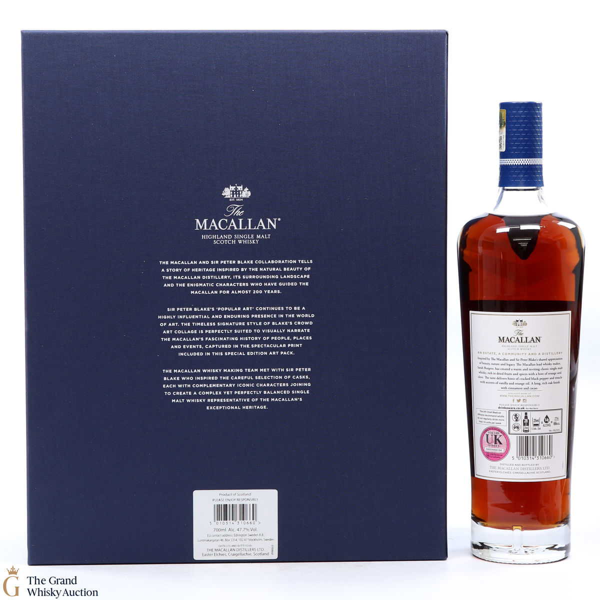 Part of The Anecdotes of Ages Collection, this is an extraordinary art and whisky collaboration with Sir Peter Blake. Being the third collaboration between the Macallan Distillery and Sir Peter Blake, this single malt was created to commemorate Sir Peter Blake's visit to The Macallan Estate. An Estate, a Community and a Distillery tells the story of some of the colourful characters from the distilleries past and present and features a label designed by Sir Peter Blake.