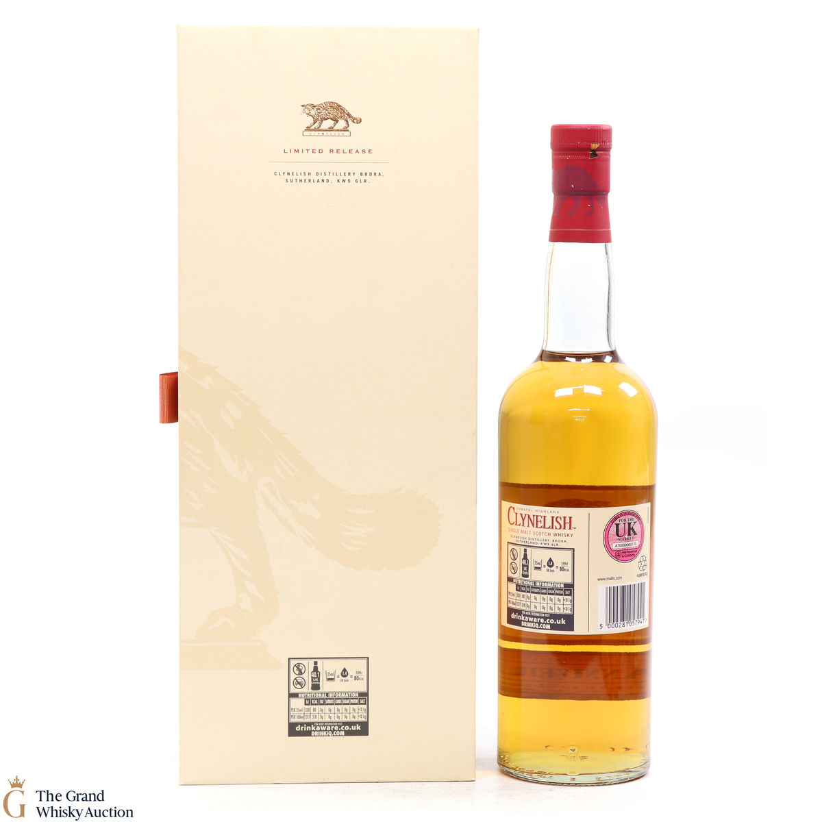 Due to the various ages of bottles and their seals, the condition of liquid is at the buyer's discretion and no claim can be lodged against failure/leakage in transit. Loss and breakage cover is available at 3% of the hammer price as standard. If the lot is not insured, no claim can be lodged against the courier or The Grand Whisky Auction for breakage or loss in transit.