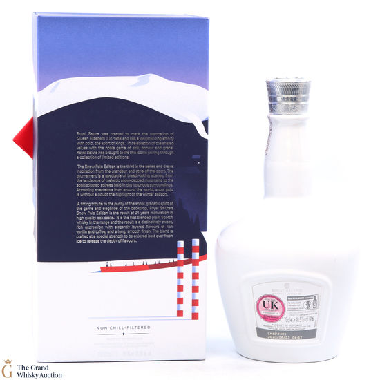 A fitting tribute to the purity of the snow, graceful spirit of the game, and elegance of the backdrop, Roya Salute's Snow Polo Edition is the result of 21 years of maturation in high-quality oak casks.