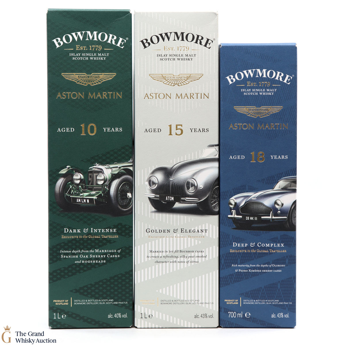 The full collection of the collaboration between Bowmore and Aston Martin, both creating timeless beauty and a lasting legacy. Each edition of the Aston Martin collection features a different car. Included in this lot is edition 1, 2 and 3: