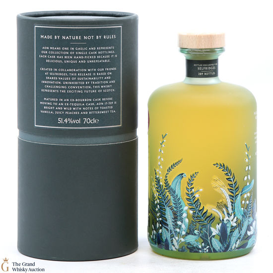 This is the first of their single cask releases, exclusively for Selfridges. 'Aon' means one in Gaelic and is the name of the Nc'Nean single cask releases. Created in collaboration with Selfridges, based on their shared values of sustainability and innovation. Matured in an ex-bourbon cask before moving into an ex-tequila cask. Bottled at 51.4%.