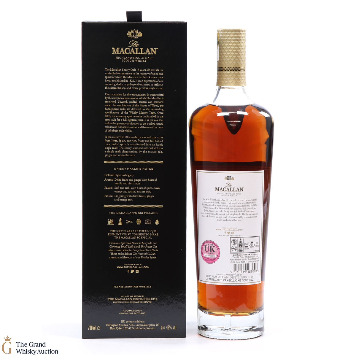 This annual release of The Macallan's popular 18 Year Old Sherry Oak is matured exclusively in sherry seasoned casks, built from both Spanish and American oak, providing a beautifully dark flavour with rich aromas.