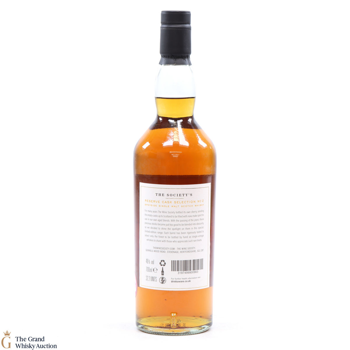 This is the second release in the reserve cask selection, this release from the wine society is a vatting of 4 hogsheads and 2 butts from a Speyside distillery.