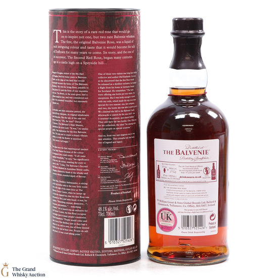 Inspired by the history of Balvenie Castle, this single malt was matured for a total of 21 years, being finished in Australian Shiraz Casks. The story of David C Stewart has created two extraordinary red roses, this is the second red rose and story number 5 in the series. Bottled at 48.1% ABV.