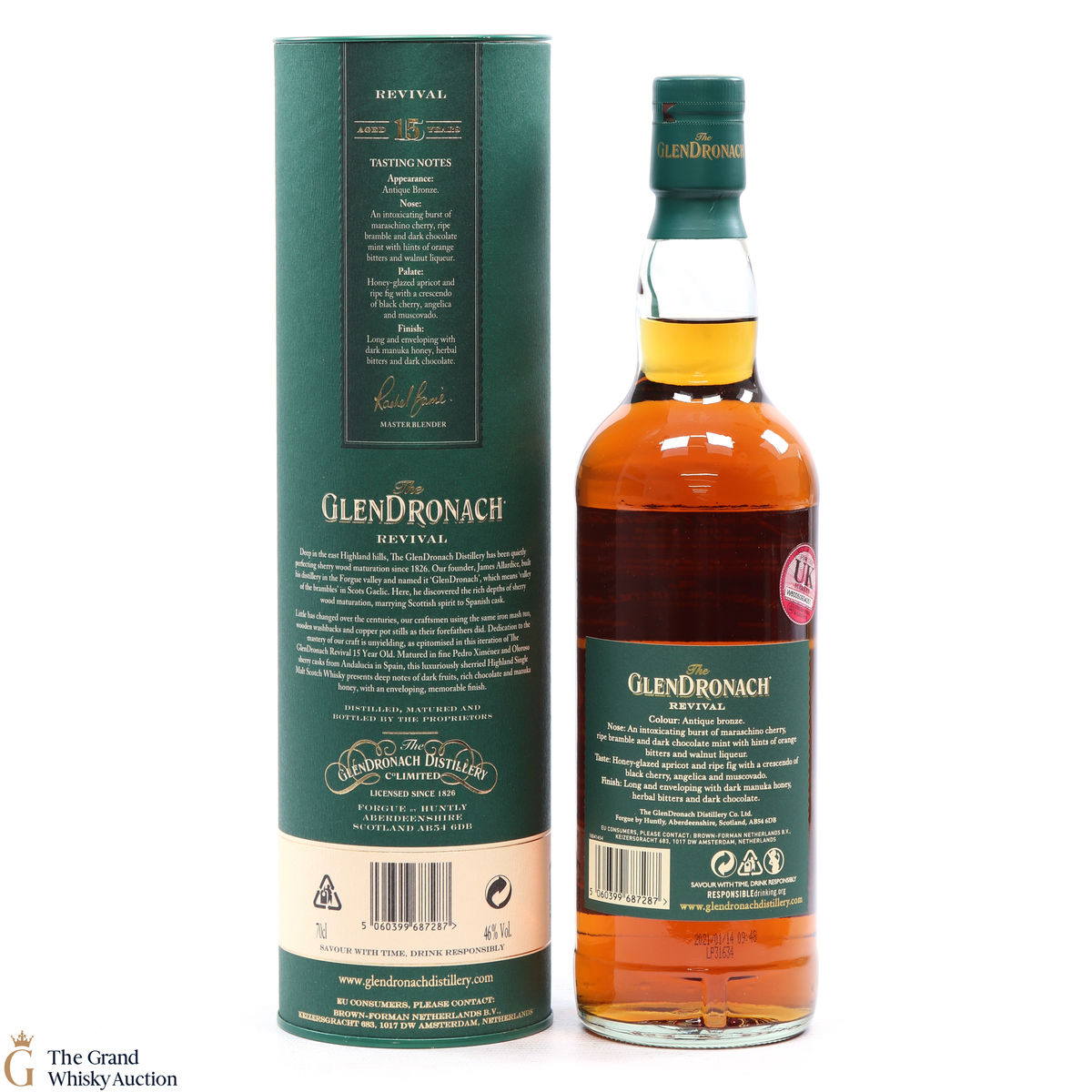 GlenDronach's 15 Year Old Revival was sadly discontinued in 2015 by the distillery due to lack of available stocks. However, stocks have been replenished and The GlenDronach 15 Year Old Revival has returned. This bottling was matured in Oloroso sherry casks.