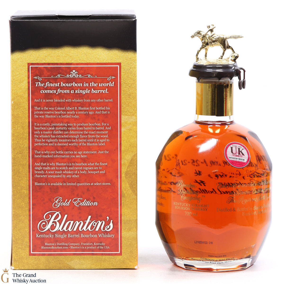 Blanton's Single Bourbon is normally 6 to 8-year-old bourbon, aged in Warehouse H at Buffalo Trace in the metal-clad warehouse at the distillery. The metal, transfers heat quicker than brick warehouses, allowing for faster ageing.
