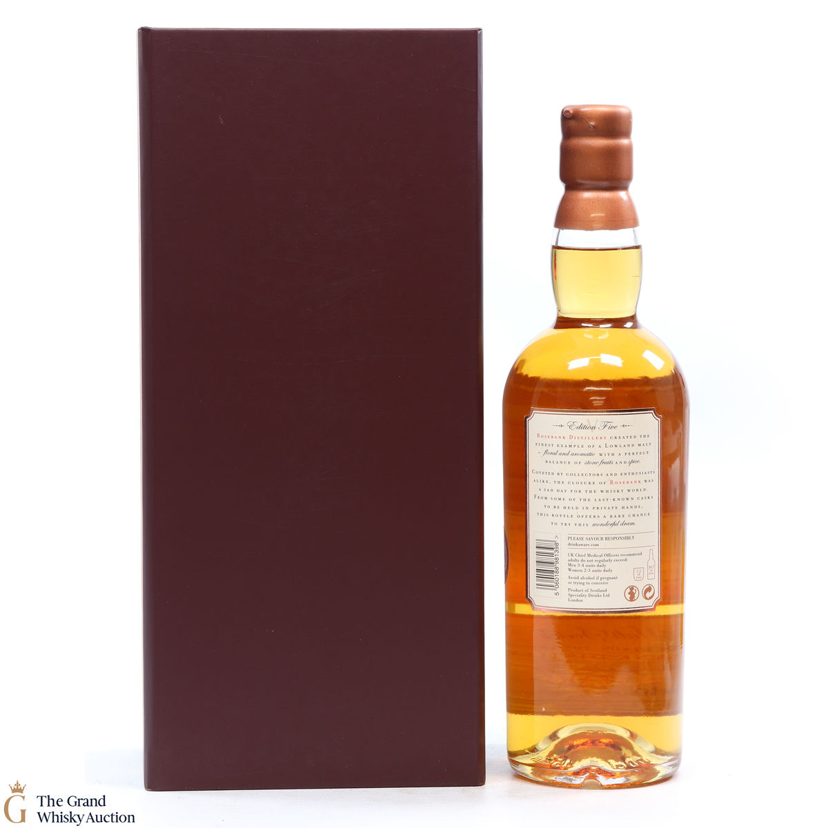 Due to the various ages of bottles and their seals, the condition of liquid is at the buyer's discretion and no claim can be lodged against failure/leakage in transit. Loss and breakage cover is available at 3% of the hammer price as standard. If the lot is not insured, no claim can be lodged against the courier or The Grand Whisky Auction for breakage or loss in transit.