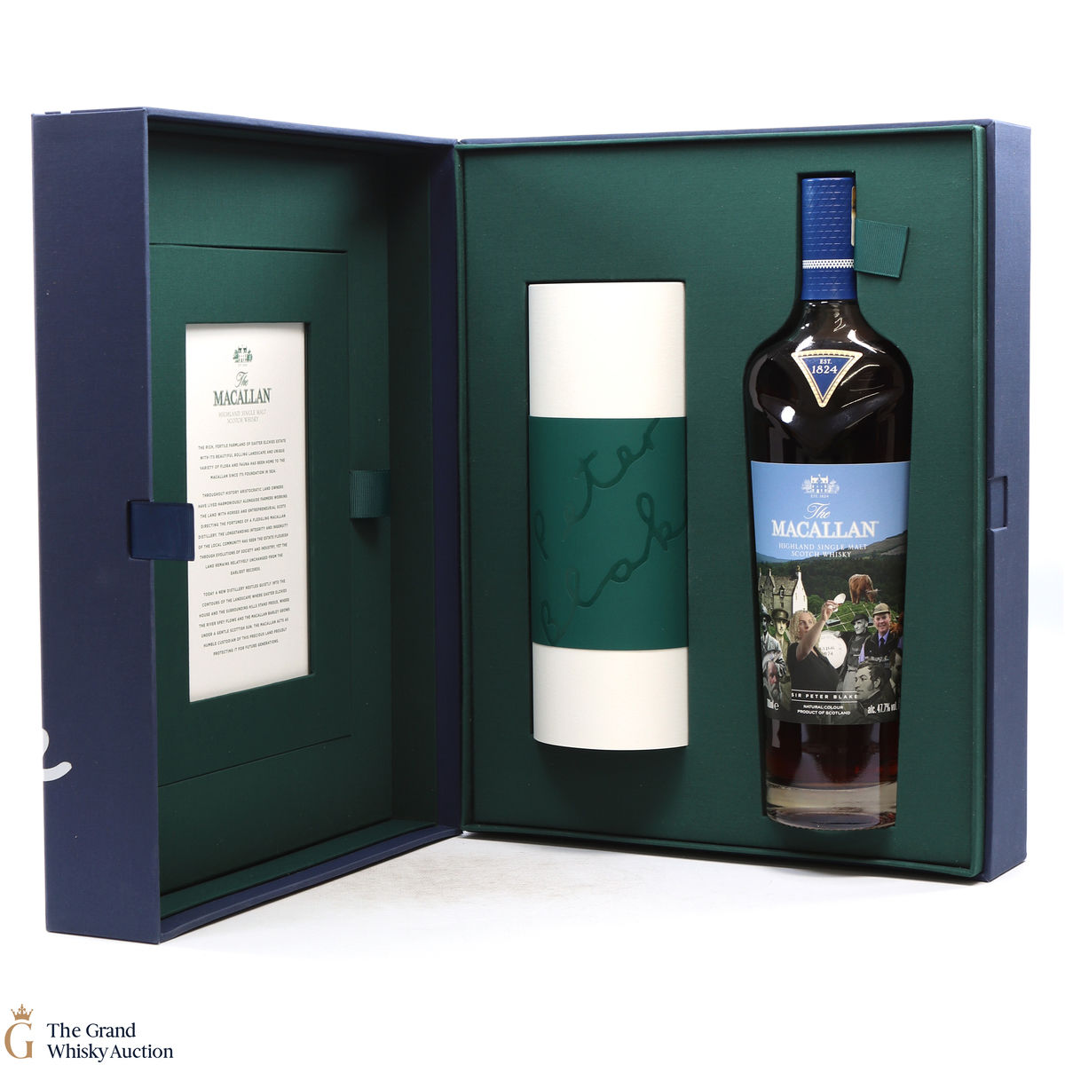 Along with this unique bottle of whisky is a scroll of artwork showing Sir Peter Blake's distinct style and a certificate detailing the history and heritage on which Sir Peter's art was based. There is also a piece of tracing paper which provides information on each character from The Macallan's history that Sir Peter chose to include in his art.