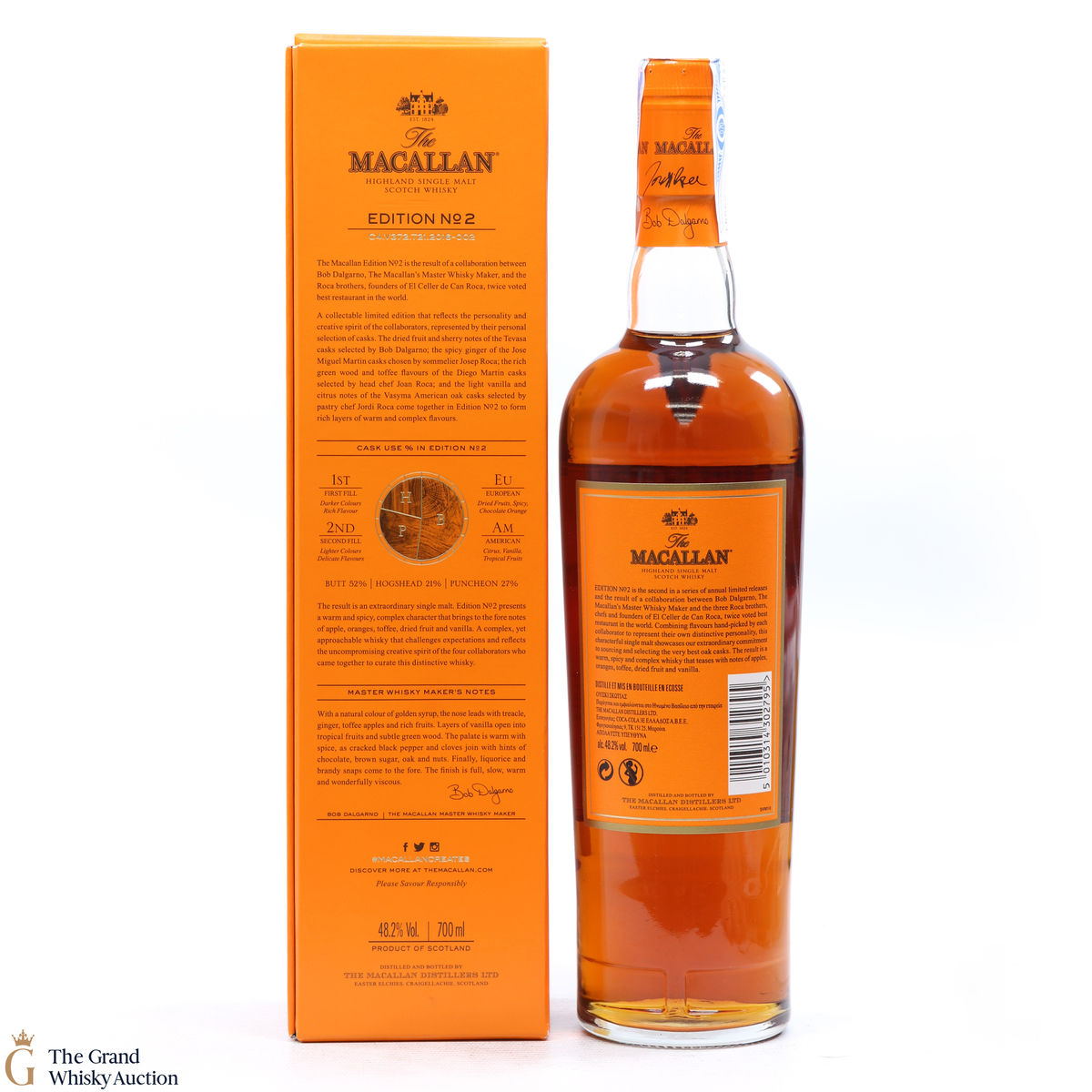 This is the second release from the Macallan Edition series. Edition No.2 is a collaboration between Macallan's master blender Bob Delgarno and legendary Spanish chefs Joan, Josep and Jordi Roca. The Rocas are the three brothers behind El Celler de Can Roca (named Best Restaurant in the World twice by Restaurant magazine). This single malt was drawn from a combination of sherry puncheons, butts and refill hogsheads.