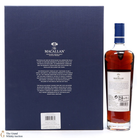Part of The Anecdotes of Ages Collection, this is an extraordinary art and whisky collaboration with Sir Peter Blake. Being the third collaboration between the Macallan Distillery and Sir Peter Blake, this single malt was created to commemorate Sir Peter Blake's visit to The Macallan Estate. An Estate, a Community and a Distillery tells the story of some of the colourful characters from the distilleries past and present and features a label designed by Sir Peter Blake.