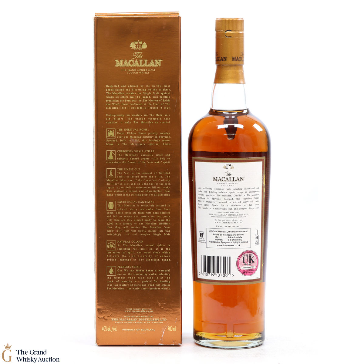 Matured exclusively in oak sherry casks from Jerez in Spain. This age statement was discontinued by Macallan in 2013.