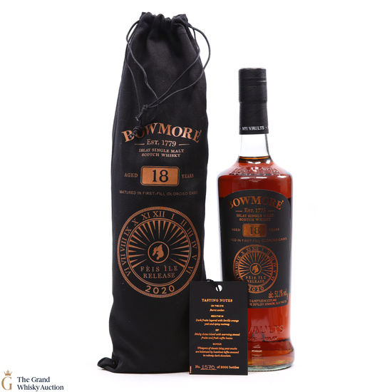 This is the Feis Ile 2021 release of the 2020 bottling from Bowmore Distillery. Matured in a first-fill Oloroso Sherry cask for 18 years, this single malt was bottled at 51.2% ABV. This rare annual release from Bowmore is limited to just 3000 bottles.