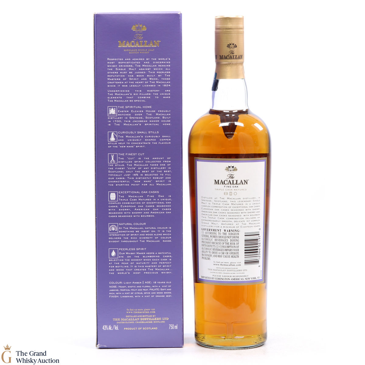 An 18 year old single malt, part of Macallan's Fine Oak range. It has been matured for eighteen years in three oak cask types; Europen oak seasoned with sherry, American oak seasoned with sherry and American oak seasoned with bourbon. This complex combination of casks has created a light amber single malt with tropical flavours balanced with wood smoke.