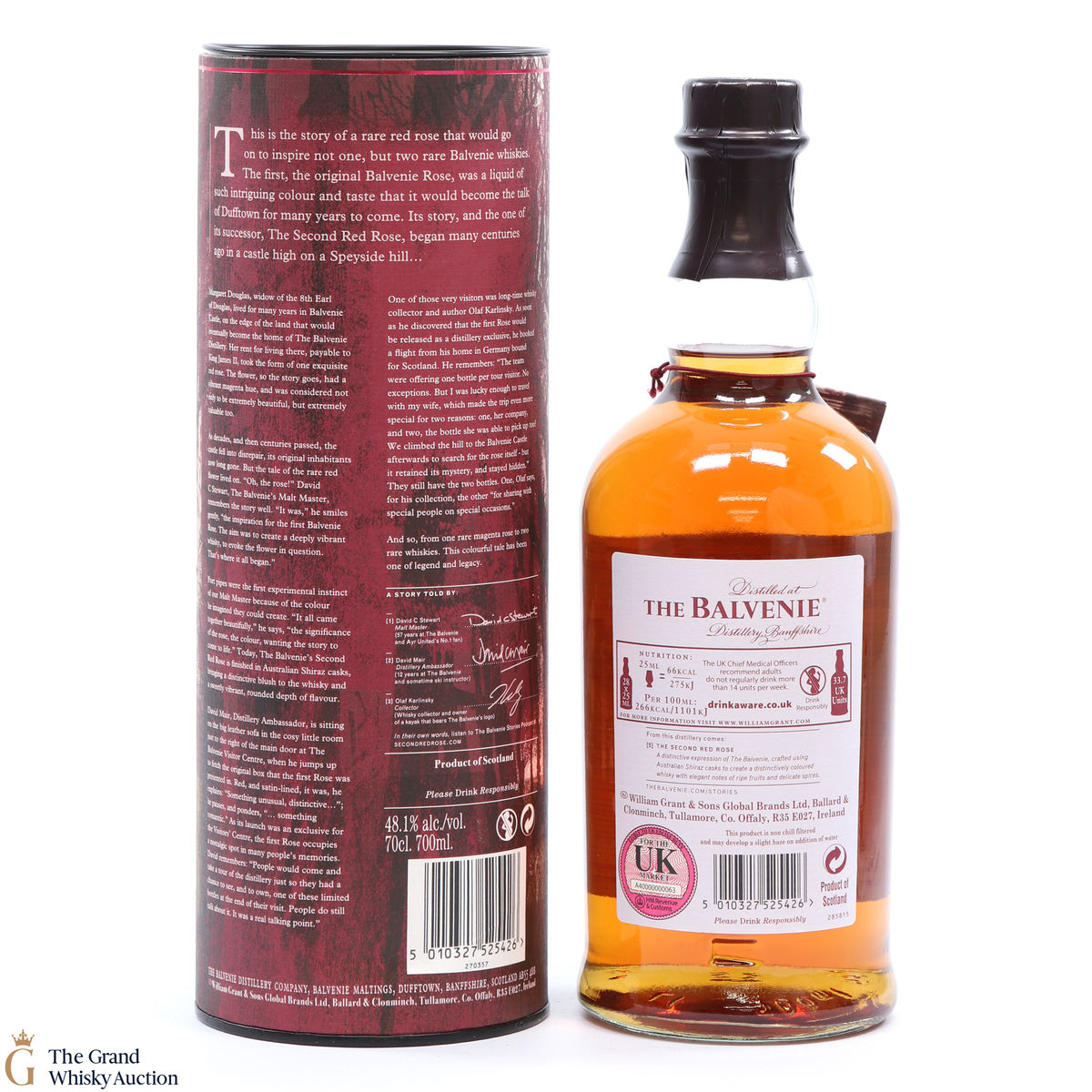 Inspired by the history of Balvenie Castle, this single malt was matured for a total of 21 years, being finished in Australian Shiraz Casks. The story of David C Stewart has created two extraordinary red roses, this is the second red rose and story number 5 in the series. Bottled at 48.1% ABV.