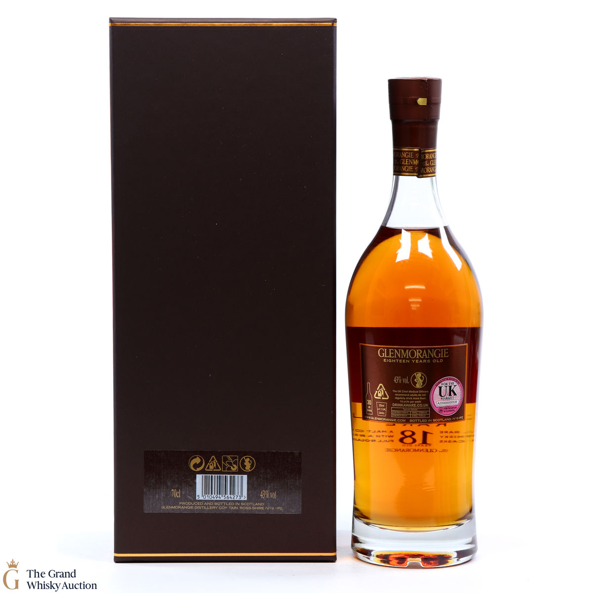 This bottle is an 18-year-old Extremely Rare, Highland single malt produced by Glenmorangie. It has been perfected by the sixteen men of Tain who have specially aged this bottle for 18 years in superior oak casks.
