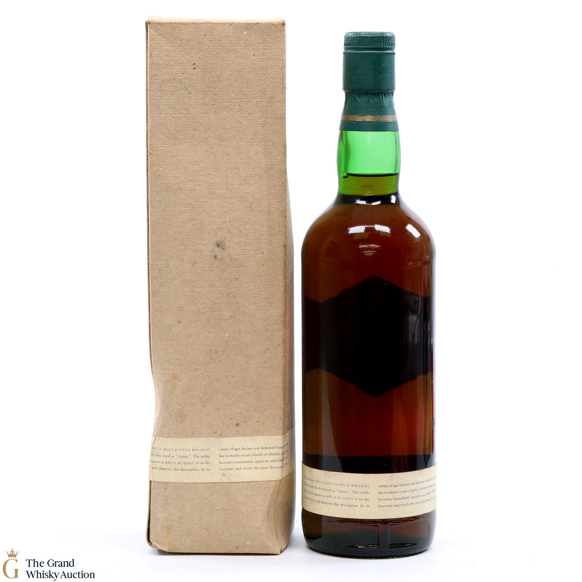 Due to the various ages of bottles and their seals, the condition of liquid is at the buyer's discretion and no claim can be lodged against failure/leakage in transit. Loss and breakage cover is available at 3% of the hammer price as standard. If the lot is not insured, no claim can be lodged against the courier or The Grand Whisky Auction for breakage or loss in transit.