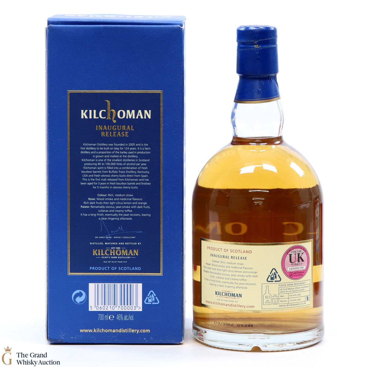 This is the first-ever release of single malt whisky from the Kilchoman Distillery. This Inaugural Release was aged for between 2.5 and 3 years in bourbon casks, before being finished for 6 months in sherry casks. Very good indeed. Malt Advocate rated it with 92 points.