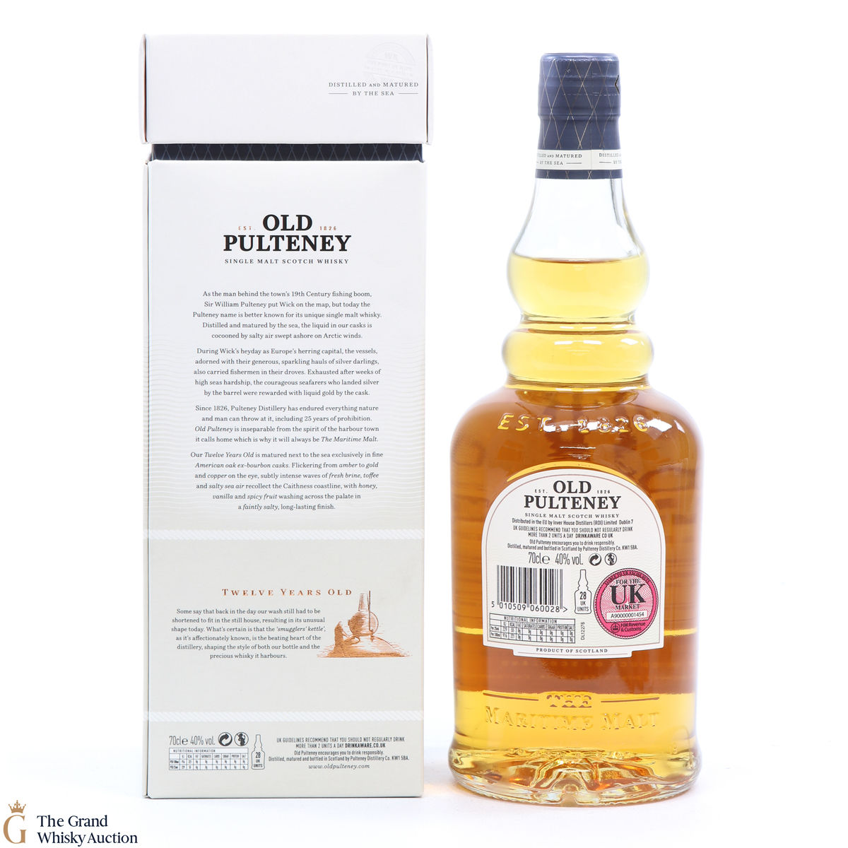 Old Pultney is known as the Maritime Malt due to the distillery location at the very North of Scotland and this is honoured with the unique shape of the bottle.