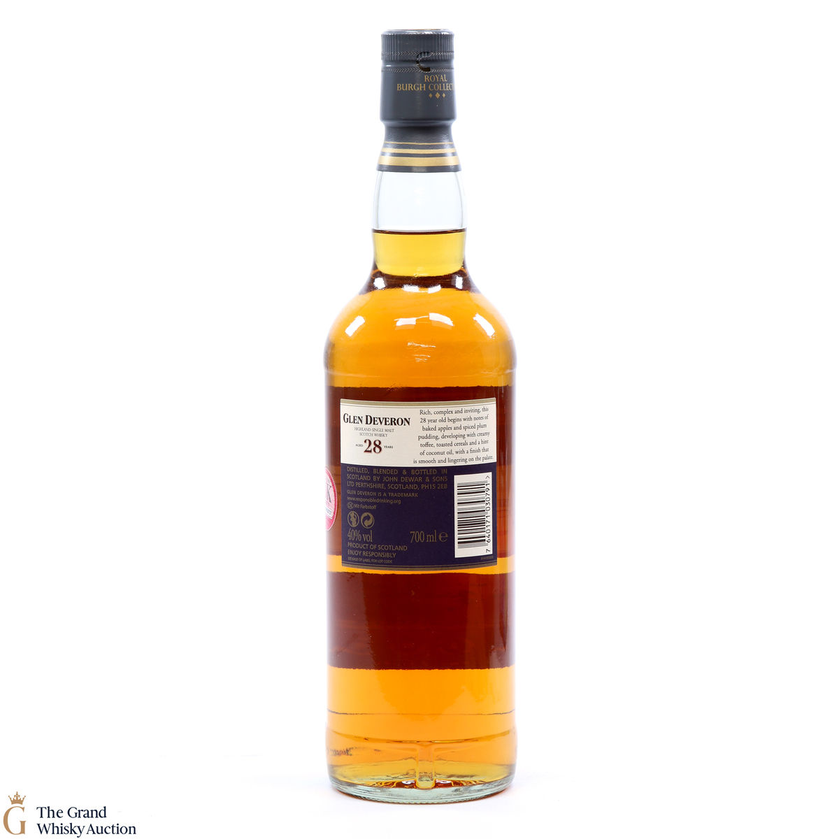 This Glen Deveron 28 year old was matured in sherry oak casks to produce a fruitier malt with a smooth and mellow finish. It was bottled from a collection of rare & aged Macduff malts, selected from the Private Reserve of Glen Deveron.