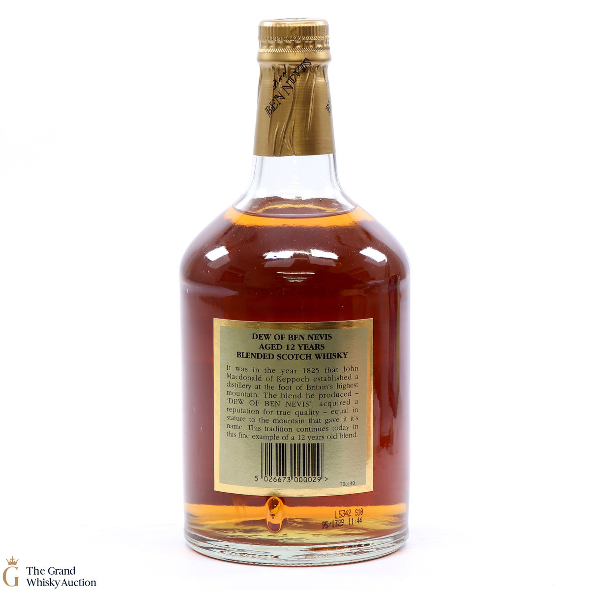 Dew of Ben Nevis is a deluxe blended Scotch whisky from Ben Nevis Distillery. All the whisky has been aged for over 12 years.