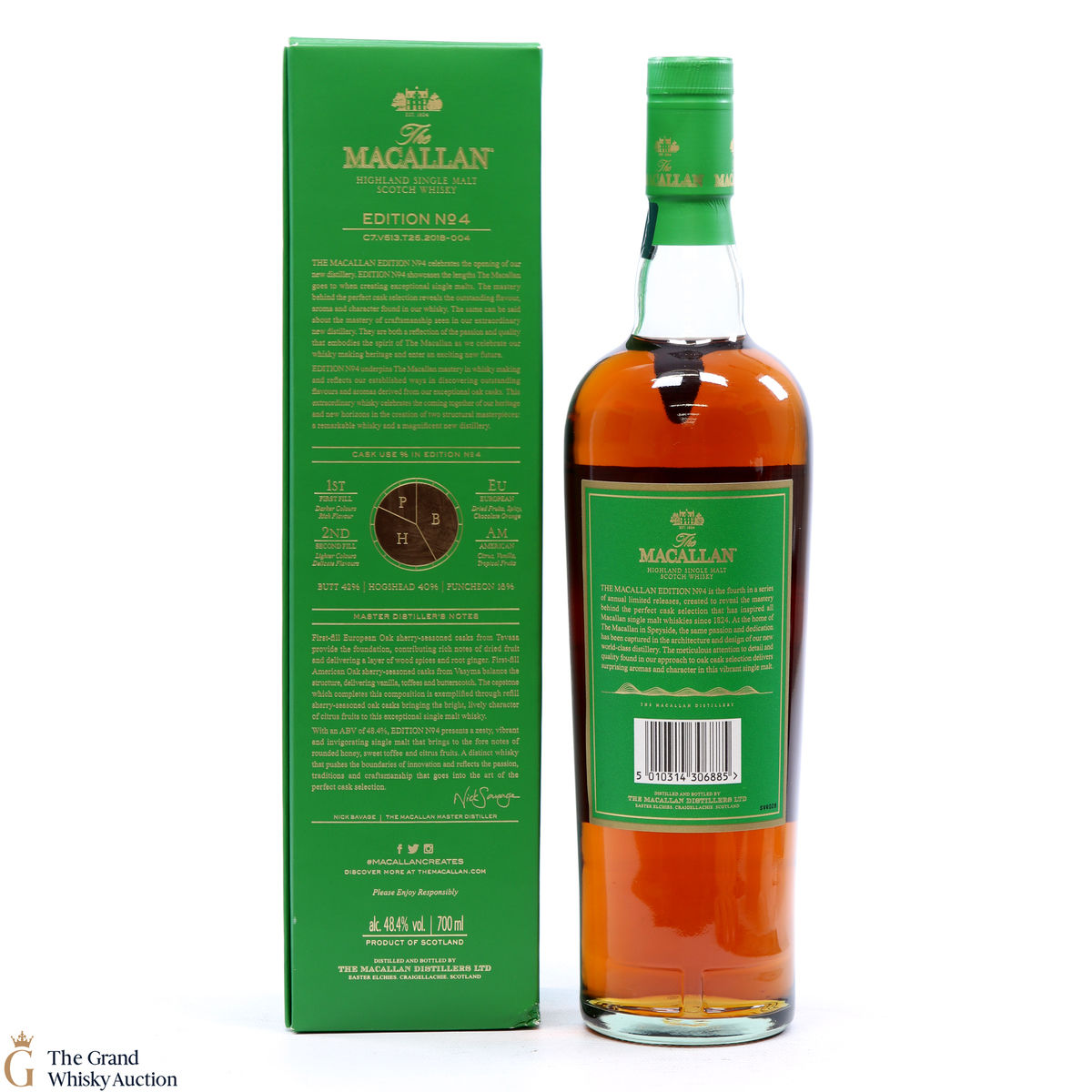 The fourth release in the Edition Series from The Macallan, this Speyside single malt is a celebration of the distillery's whisky making heritage, combining a unique selection of oak cask styles. Edition No.4 reflects the craftsmanship and pioneering design of the new Macallan Distillery.