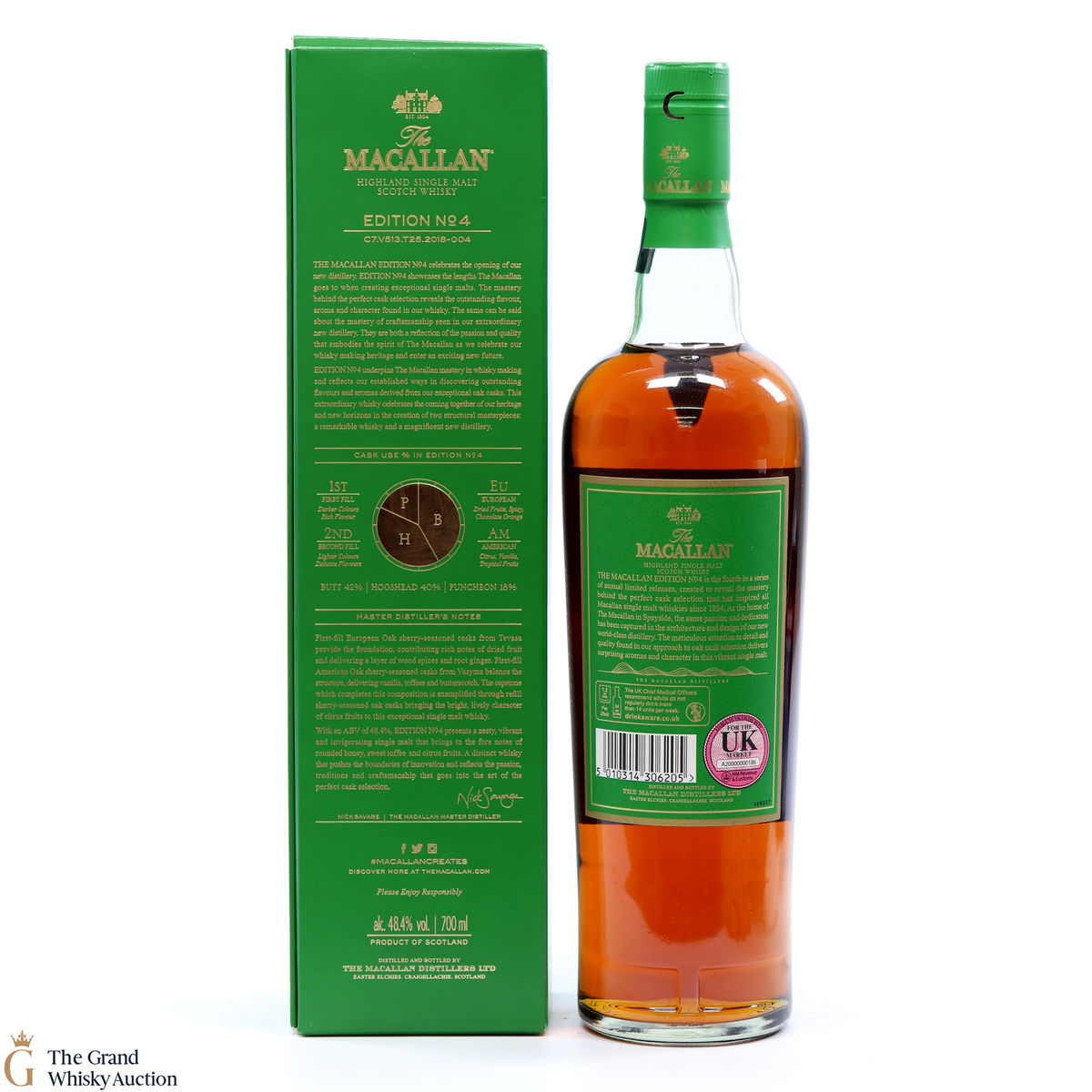 The fourth release in the Edition Series from The Macallan, this Speyside single malt is a celebration of the distillery's whisky making heritage, combining a unique selection of oak cask styles. Edition No.4 reflects the craftsmanship and pioneering design of the new Macallan distillery.