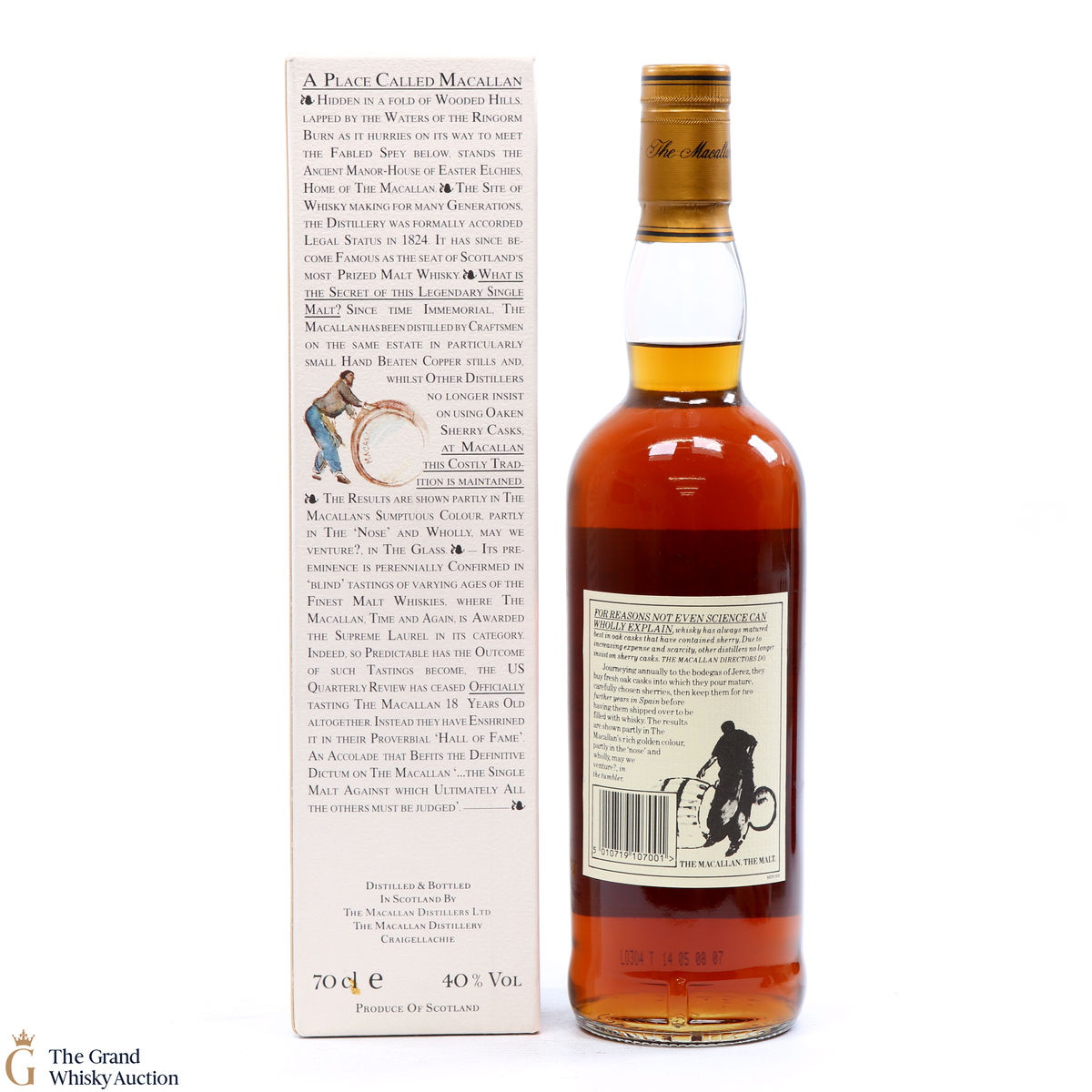 This is an old-style presentation of Macallan 10 Year old was bottled in the 1990's. This classic Speyside malt whisky matured in sherry oak casks from Jerez. Very collectable.