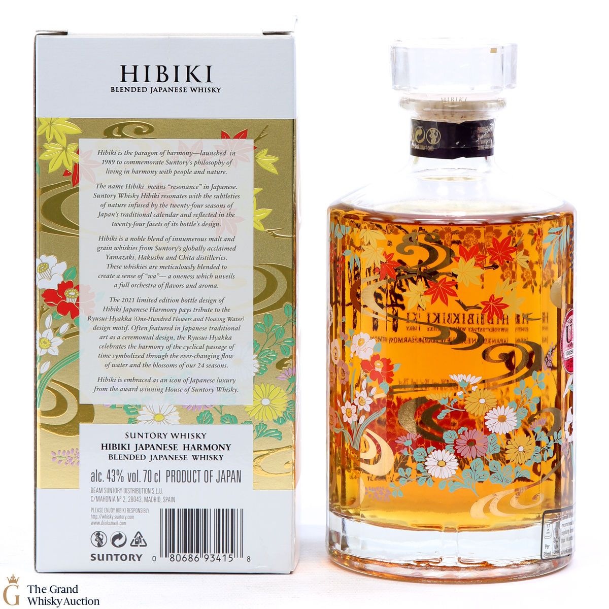 This is a limited edition, specially designed bottle with painted flowers and flowing ribbons of water. The 2021 special edition pays homage to the Ryisui-Hyakka (One Hundred Flowers and Flowing Water) and celebrates different seasonal flowers which help characterise the Japanese seasons. 5 types of casks were used and in typical Hibiki fashion, the bottle always has 24 facets which represent 24 seasons in the Japanese lunar calendar.