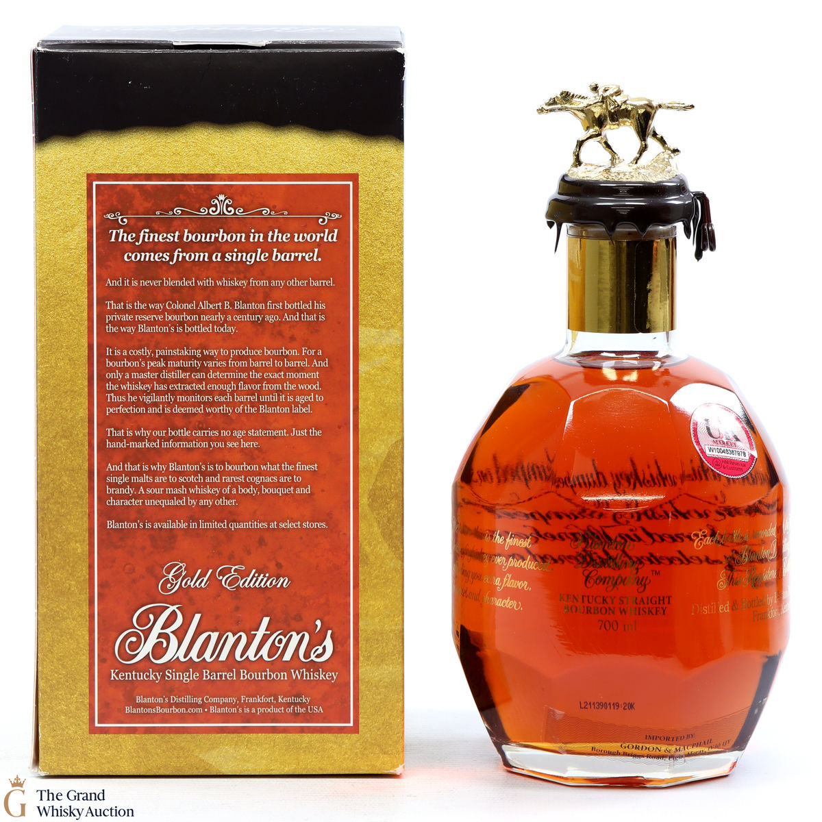 Due to the various ages of bottles and their seals, the condition of liquid is at the buyer's discretion and no claim can be lodged against failure/leakage in transit. Loss and breakage cover is available at 3% of the hammer price as standard. If the lot is not insured, no claim can be lodged against the courier or The Grand Whisky Auction for breakage or loss in transit.