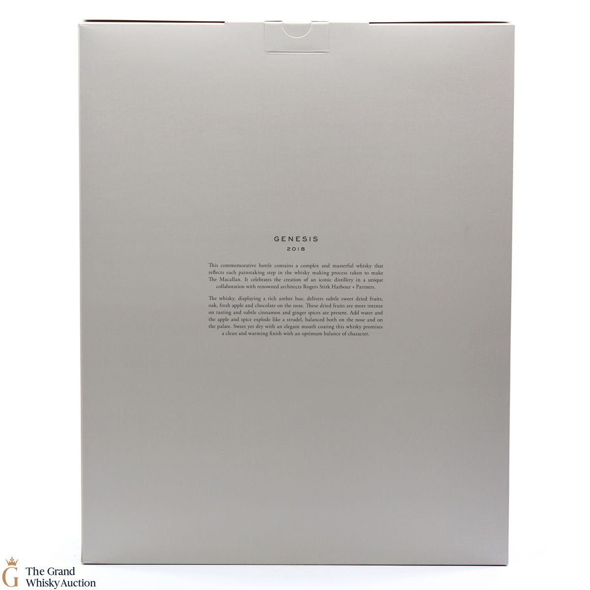 The Macallan Genesis Limited Edition marks the creation of the iconic Distillery in a unique collaboration with internationally acclaimed architects Rogers Stirk Harbour + Partners. Released in August 2018, the special edition bottling commemorates the unveiling of the brand new Macallan Distillery which opened in June 2018.