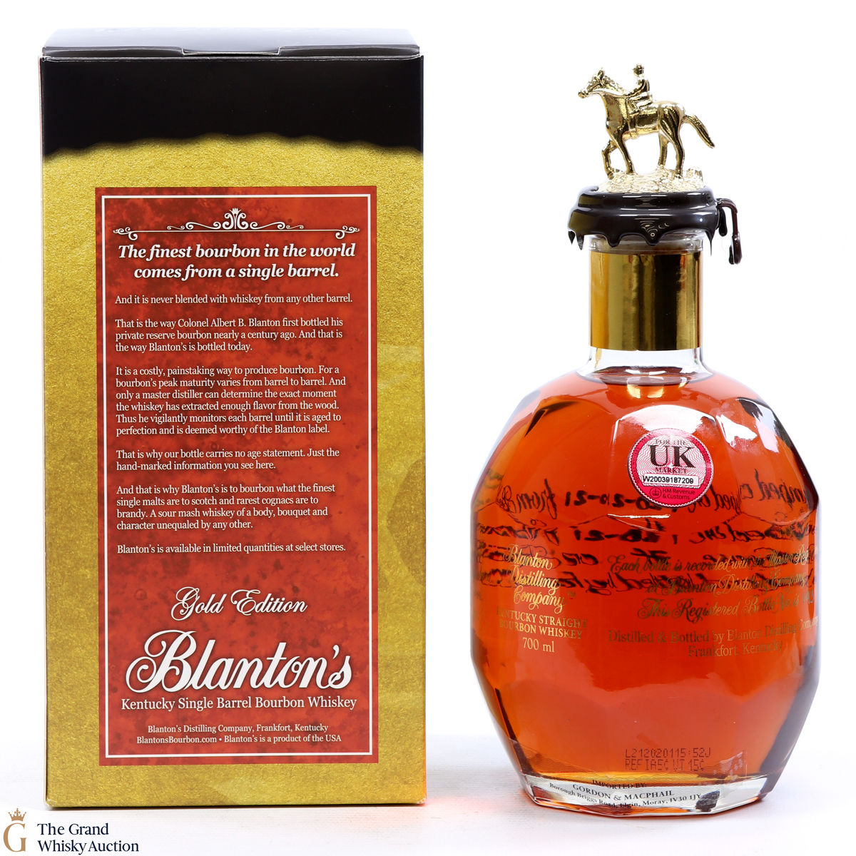 Due to the various ages of bottles and their seals, the condition of liquid is at the buyer's discretion and no claim can be lodged against failure/leakage in transit. Loss and breakage cover is available at 3% of the hammer price as standard. If the lot is not insured, no claim can be lodged against the courier or The Grand Whisky Auction for breakage or loss in transit.