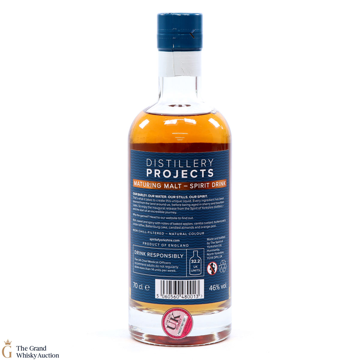 Spirit of Yorkshire Distillery Projects range was designed to explore what this Yorkshire spirit can be. Pre-whisky, focusing this on the ‘maturing malt’. The first four releases (DPs 001-004) formed a mini-series. These looked at the different cask types, distillation techniques, and how the two-spirit styles (pot/column) marry together.