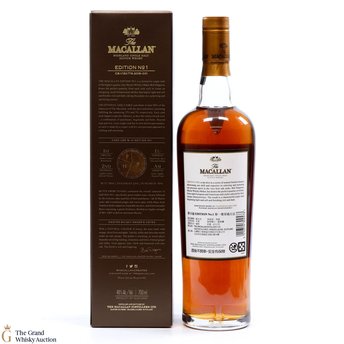The Macallan Edition No. 1 is the debut expression in the Edition Series. This is a limited edition drawn from eight European and American oak cask styles selected for their unique characteristics.