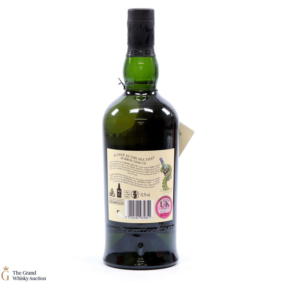 This is a committee exclusive release of the Ardbeg Kelpie, a single malt released in 2017. It was matured in casks made from virgin Black Sea oak and more traditional bourbon casks. The Committee Release is bottled at the higher strength of 51.7% ABV (while the standard Ardbeg Kelpie has bottled at 46% ABV).