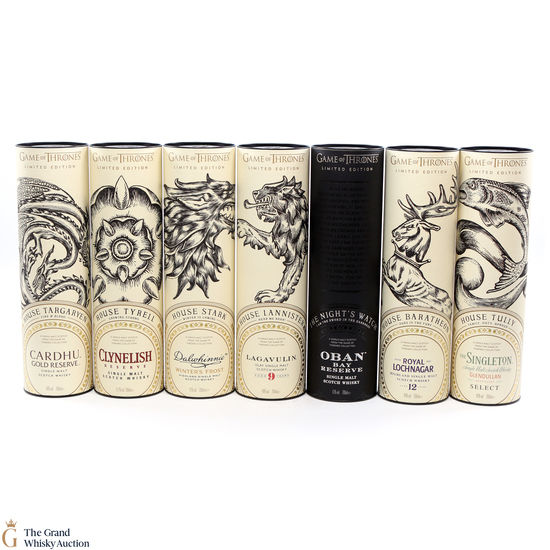 Each of the Game of Thrones Scotch whiskies has been paired with a particular house from the seven kingdoms in the television series, plus the Night’s Watch guard.