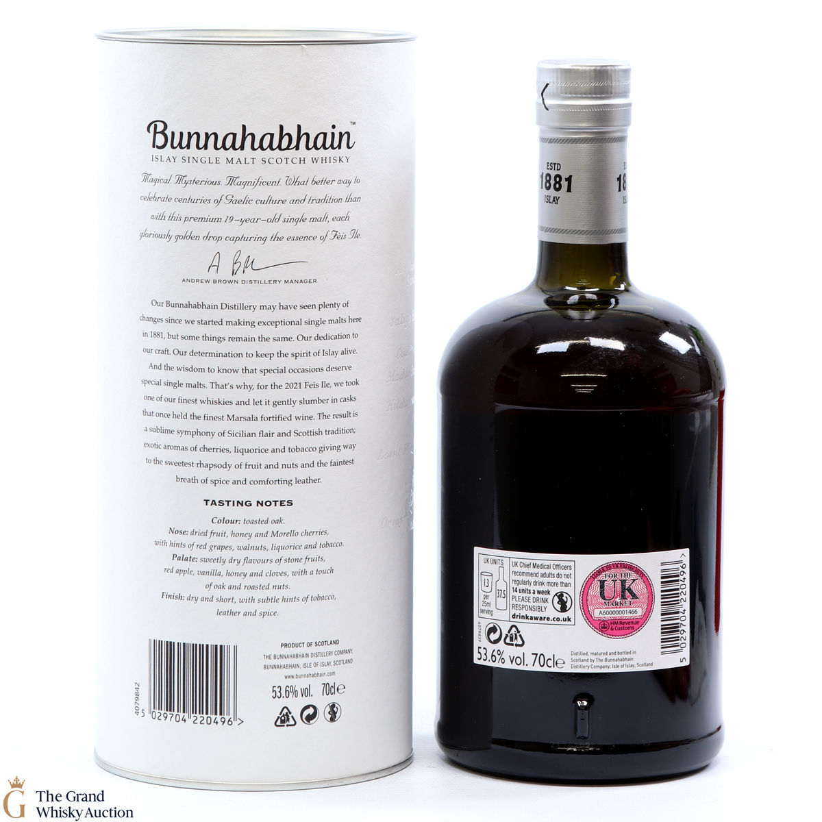 For Feis Ile 2021, Bunnahabhain Distillery released this unique bottling. Distilled back on the 8th of October 2001, this single malt was finished in a cask that once held Marsala fortified wine resulting in a combination of Sicilian flair and Scottish tradition. Bottled on the 19th of January 2021, this is one of only 1333 bottles produced.
