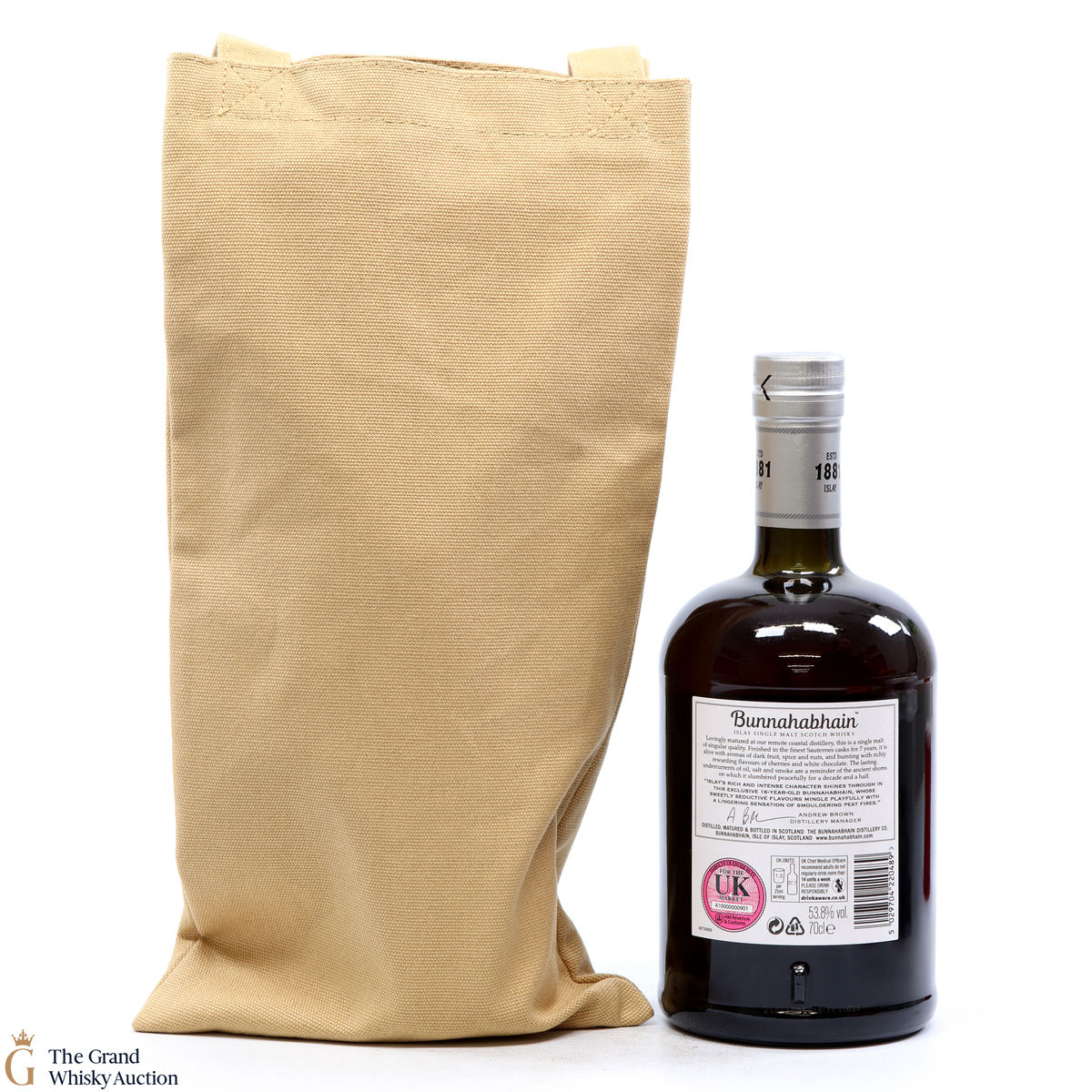 Due to the various ages of bottles and their seals, the condition of liquid is at the buyer's discretion and no claim can be lodged against failure/leakage in transit. Loss and breakage cover is available at 3% of the hammer price as standard. If the lot is not insured, no claim can be lodged against the courier or The Grand Whisky Auction for breakage or loss in transit.