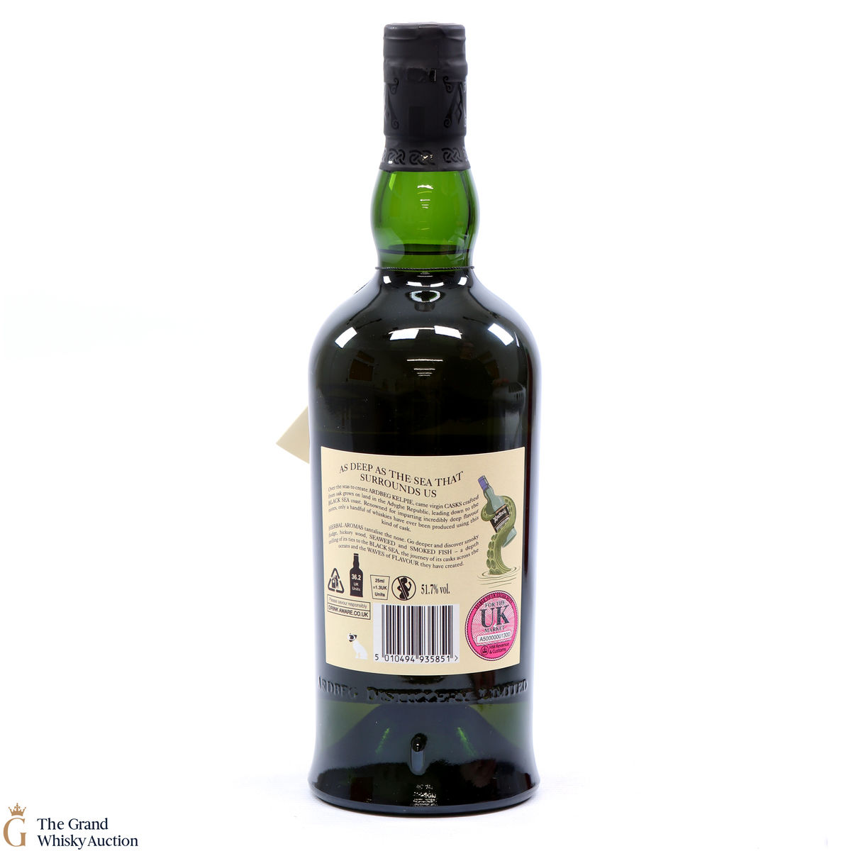 This is a committee exclusive release of the Ardbeg Kelpie, a single malt released in 2017. It was matured in casks made from virgin Black Sea oak and more traditional bourbon casks. The Committee Release is bottled at the higher strength of 51.7% ABV (while the standard Ardbeg Kelpie has bottled at 46% ABV).