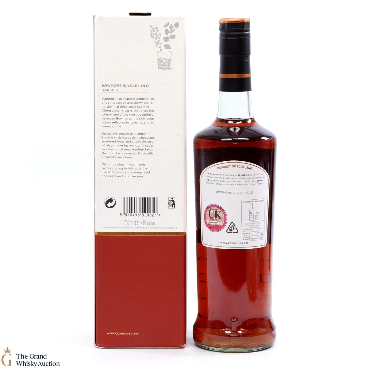 The Bowmore Darkest has been matured in Bourbon casks initially, but the final three years the single malt spent in Oloroso sherry casks gives the whisky its rich, deep colour. This 15 year old was bottled at 43% abv.